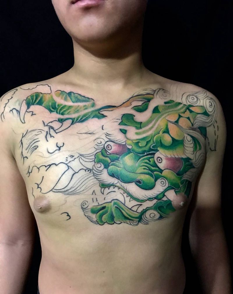 当前位置: 首页 >黑龙江省哈尔滨市纹身店-彫衍刺青纹身图案>花胸唐狮纹身图片