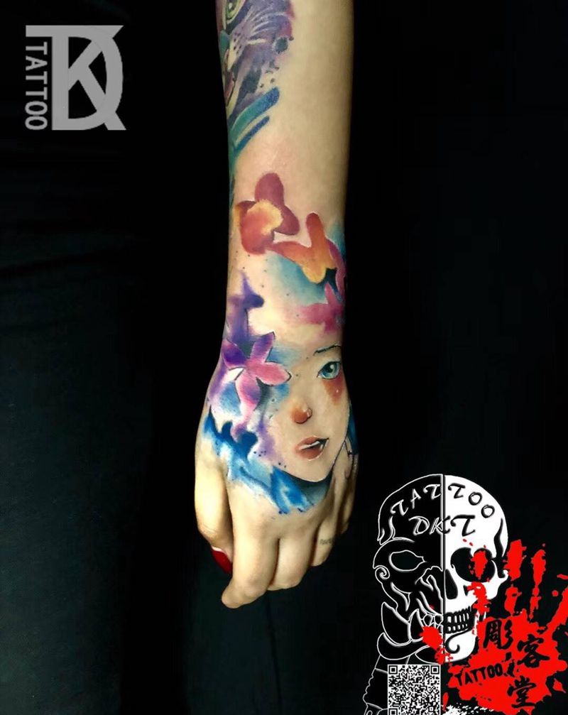 当前位置: 首页 >黑龙江省哈尔滨市纹身店-彫衍刺青纹身图案>水彩画手纹身图片_手部水彩纹身图案