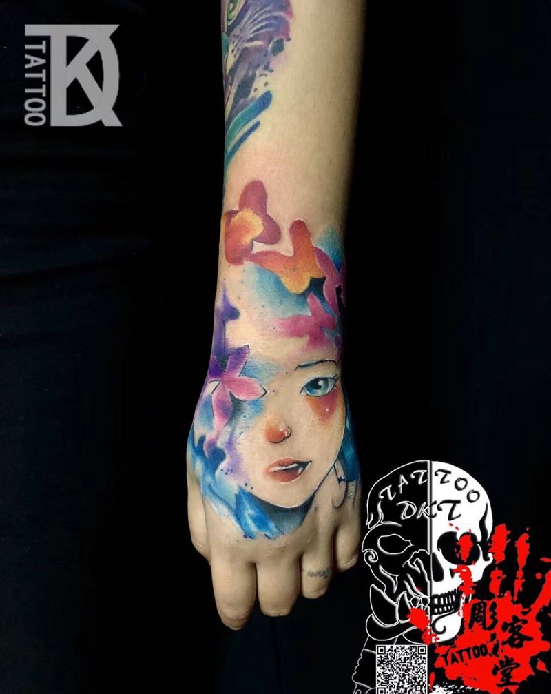 当前位置: 首页 >黑龙江省哈尔滨市纹身店-彫衍刺青纹身图案>水彩画手纹身图片_手部水彩纹身图案