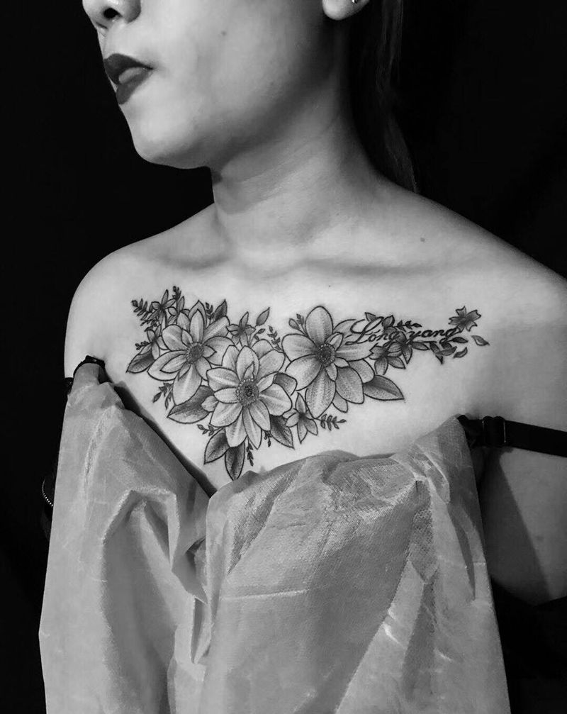 • 女性大花胸纹身_43张霸气漂亮的女性大花胸纹身图案作品
