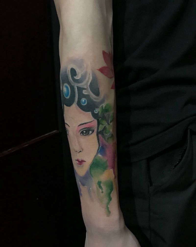 当前位置: 首页 >黑龙江省哈尔滨市纹身店-彫衍刺青纹身图案>水彩花旦纹身图片_手臂纹身图案