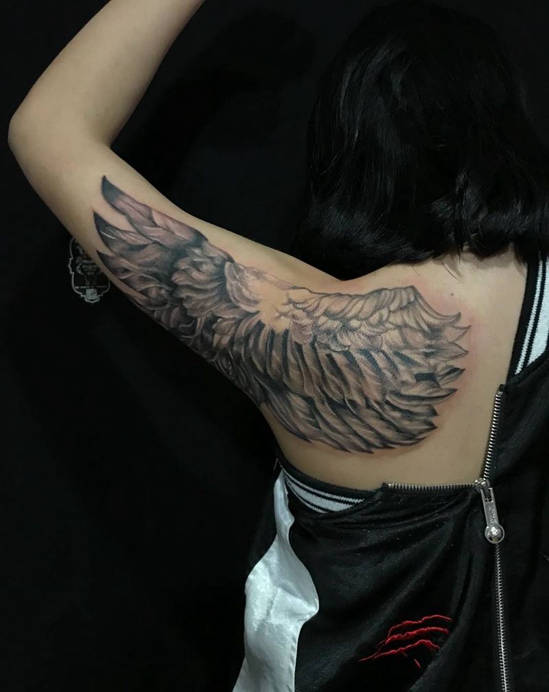 翅膀纹身图片_手臂背部纹身图案