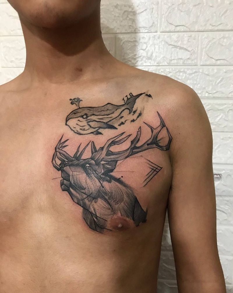 针痕鹿头纹身图片