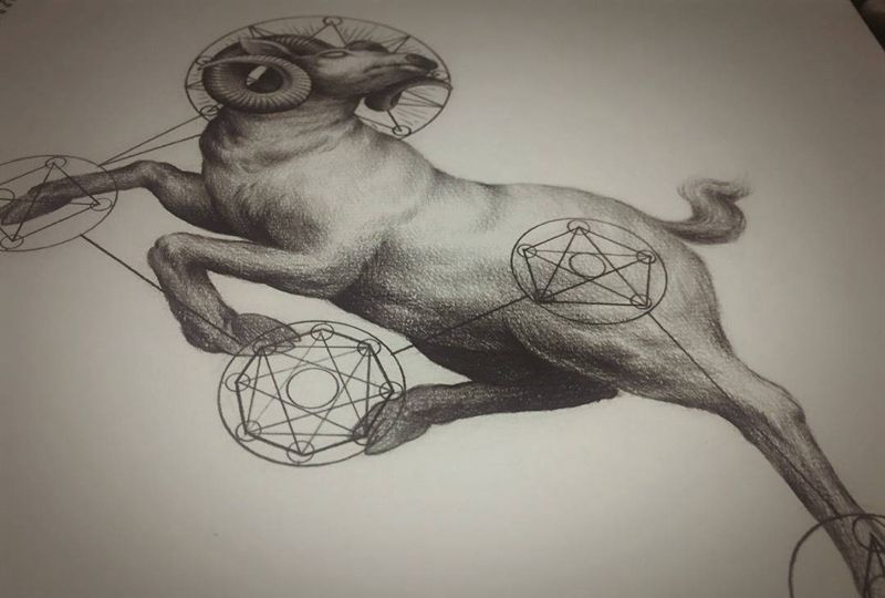 神话十二宫—白羊座纹身图片_插画手稿欧美写实原创宗教鬼神动物图腾清新纹身图案