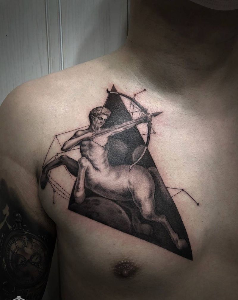 希臘神話—射手座纹身图片_胸部欧美写实几何纹身图案