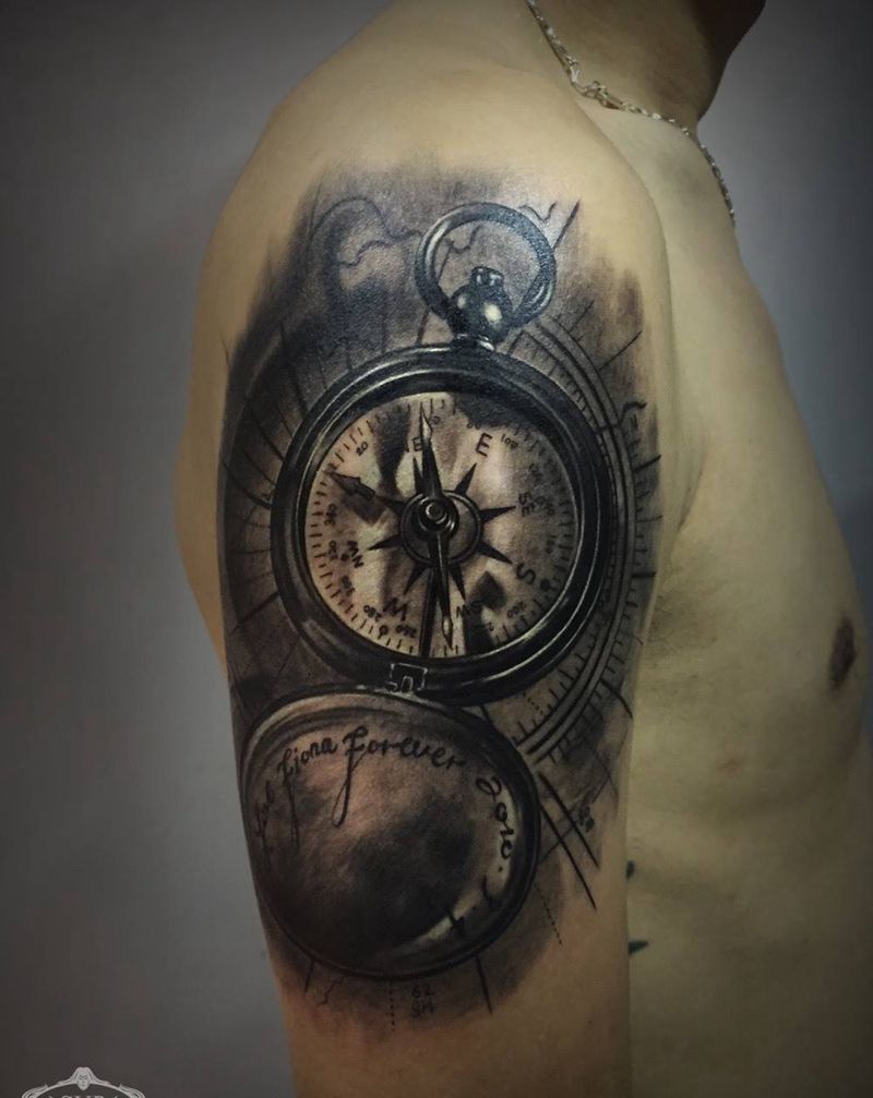当前位置: 首页 >黑龙江省哈尔滨市纹身店-阿修罗刺青 定制馆纹身图案>指南针纹身图片_成品肩部手臂写实原创静物欧美纹身图案