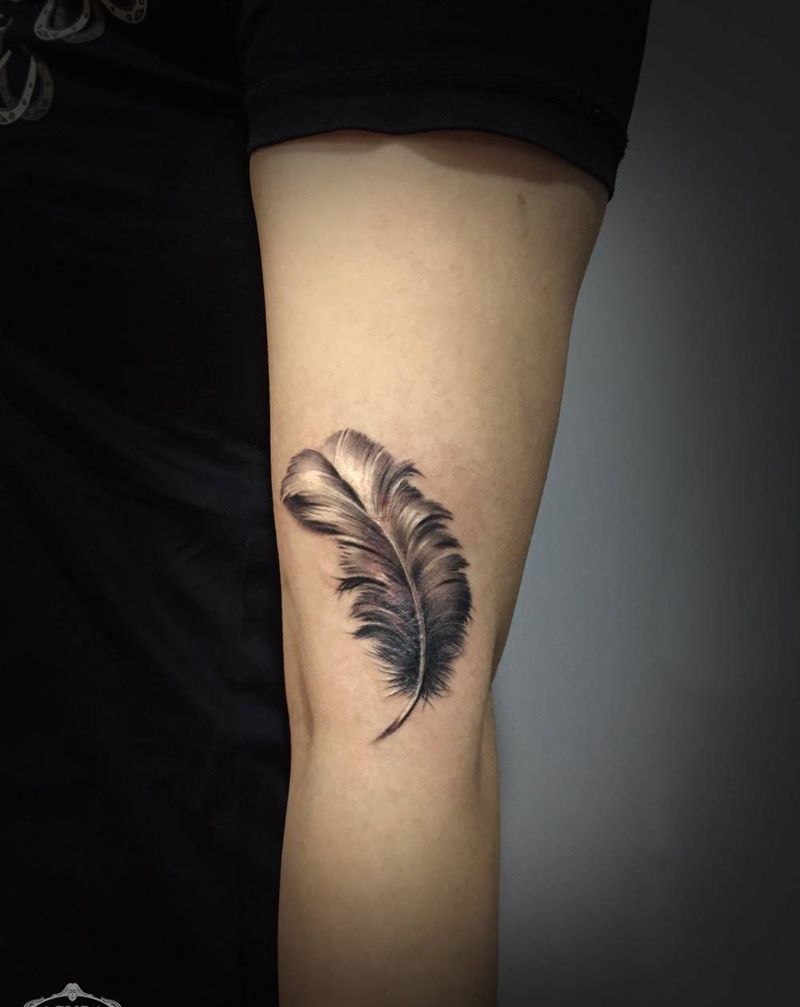 羽毛覆盖疤痕纹身图片_成品手臂欧美写实静物原创覆盖纹身图案