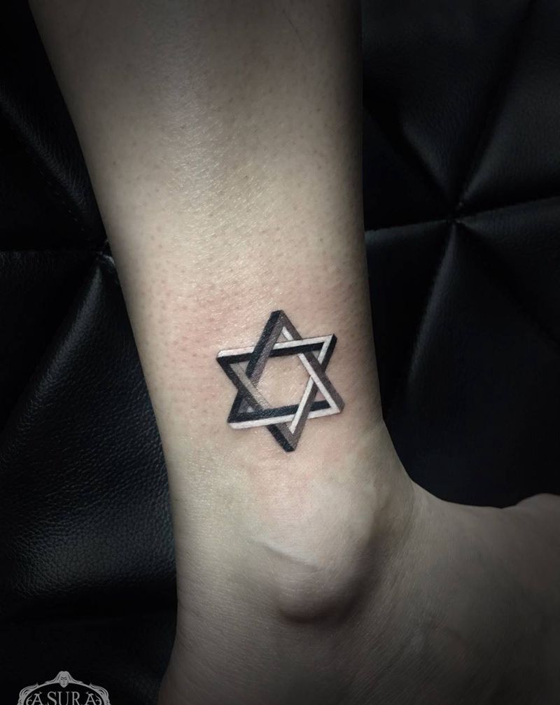 当前位置: 首页 >黑龙江省哈尔滨市纹身店-阿修罗刺青 定制馆纹身图案>六芒星纹身图片_原创几何宗教图腾腿部脚部欧美清新写实情侣纹身图案