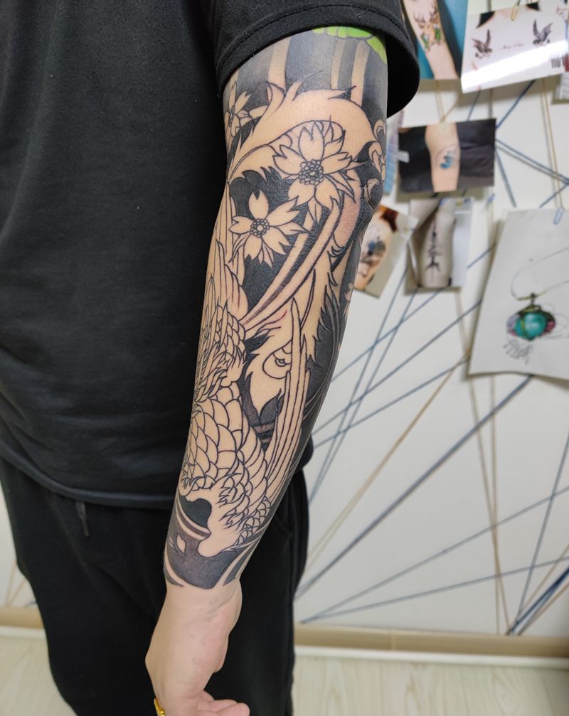 当前位置: 首页 >黑龙江省哈尔滨市纹身店-H&T TATTOO纹身图案>凤凰上色(未完成)纹身图片_新传统老传统凤凰菊花纹身图案