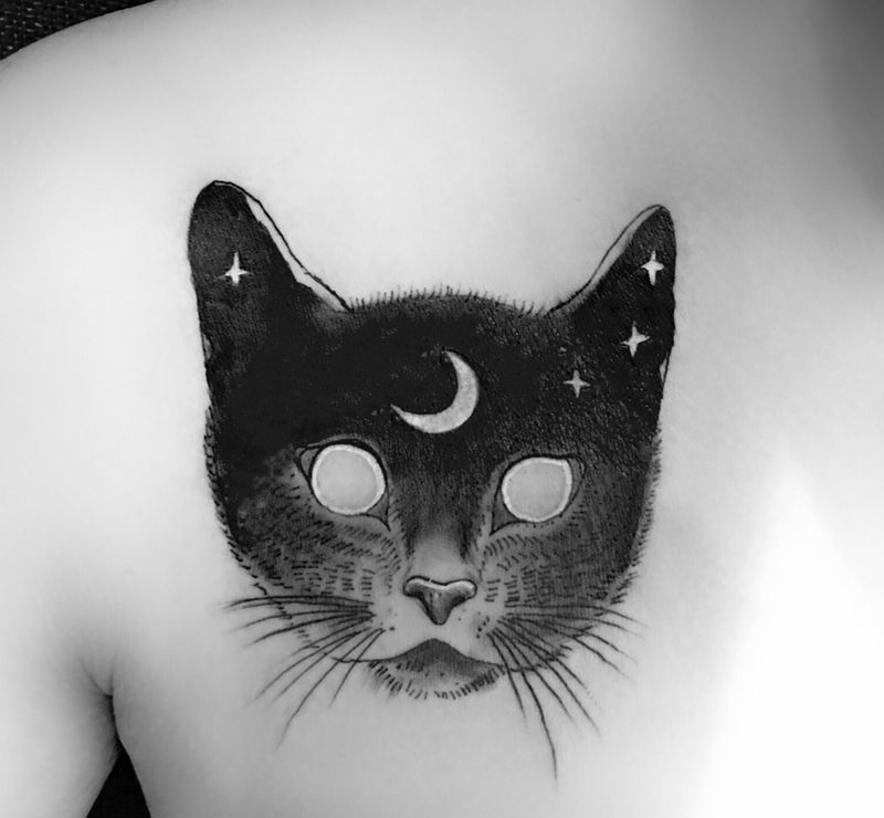 当前位置: 首页 >黑龙江省哈尔滨市纹身店-H&T TATTOO纹身图案>猫咪纹身图片_成品原创动物清新肖像欧美胸部纹身图案
