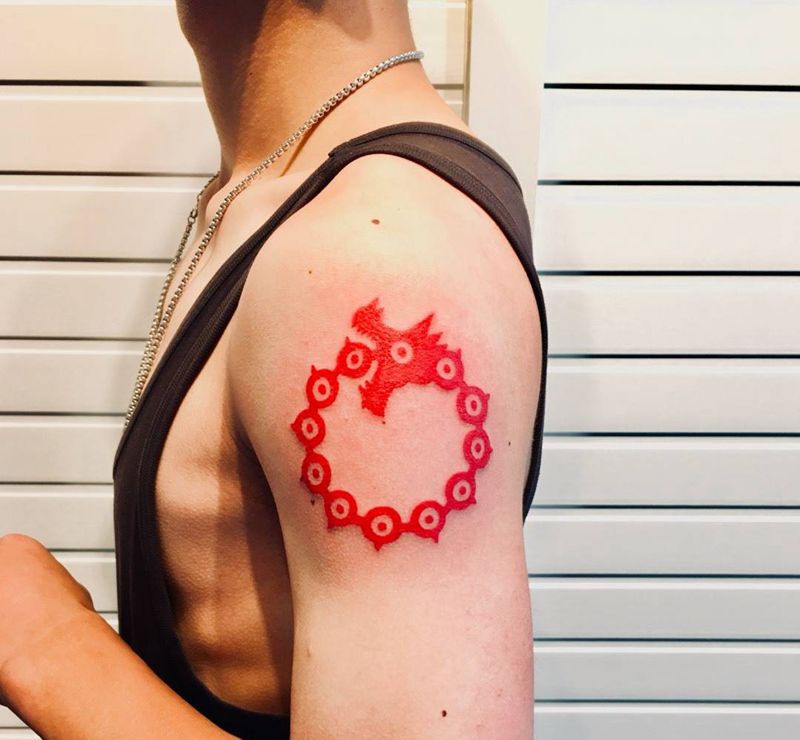 当前位置: 首页 >黑龙江省哈尔滨市纹身店-H&T TATTOO纹身图案>咬尾龙纹身图片_肩部手臂图腾几何龙纹身图案