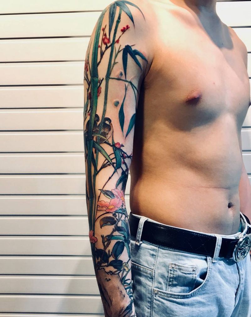 当前位置: 首页 >黑龙江省哈尔滨市纹身店-H&T TATTOO纹身图案>写意纹身纹身图片_成品原创植物动物清新国画手臂肩部纹身图案