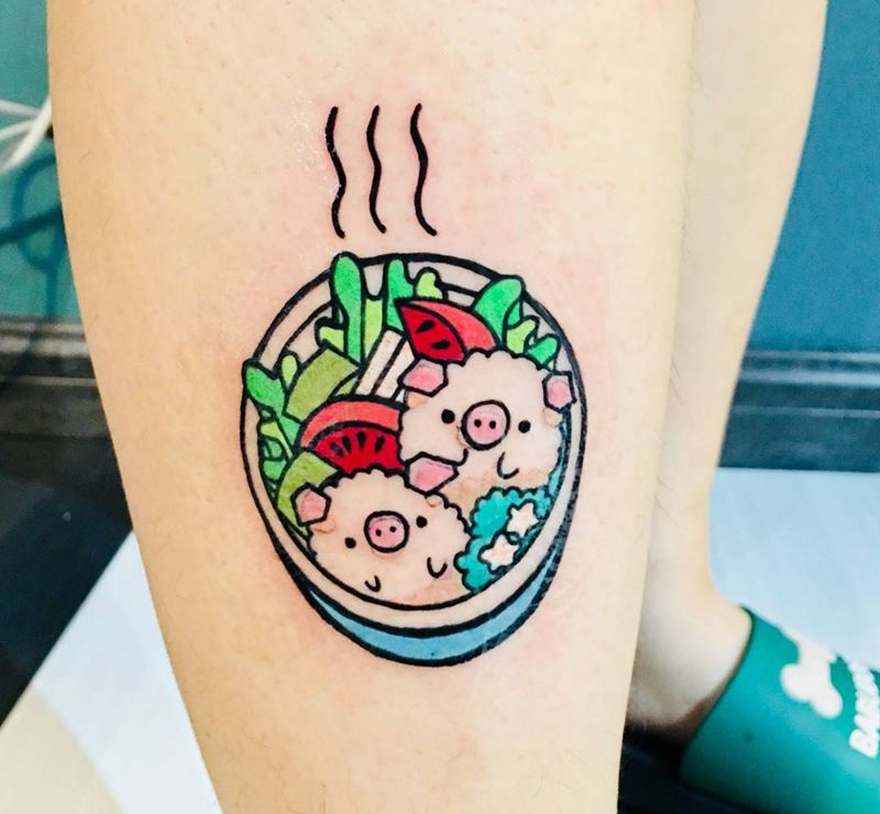 一碗小可爱纹身图片_腿部New School彩色可爱纹身图案