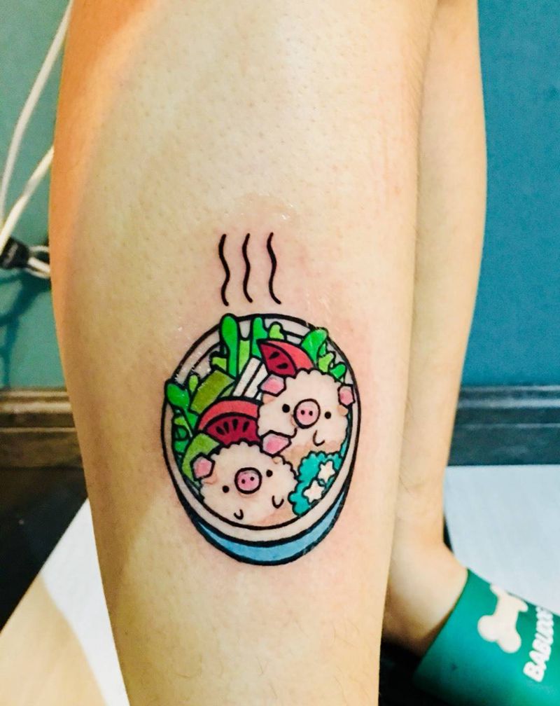 一碗小可爱纹身图片_腿部New School彩色可爱纹身图案