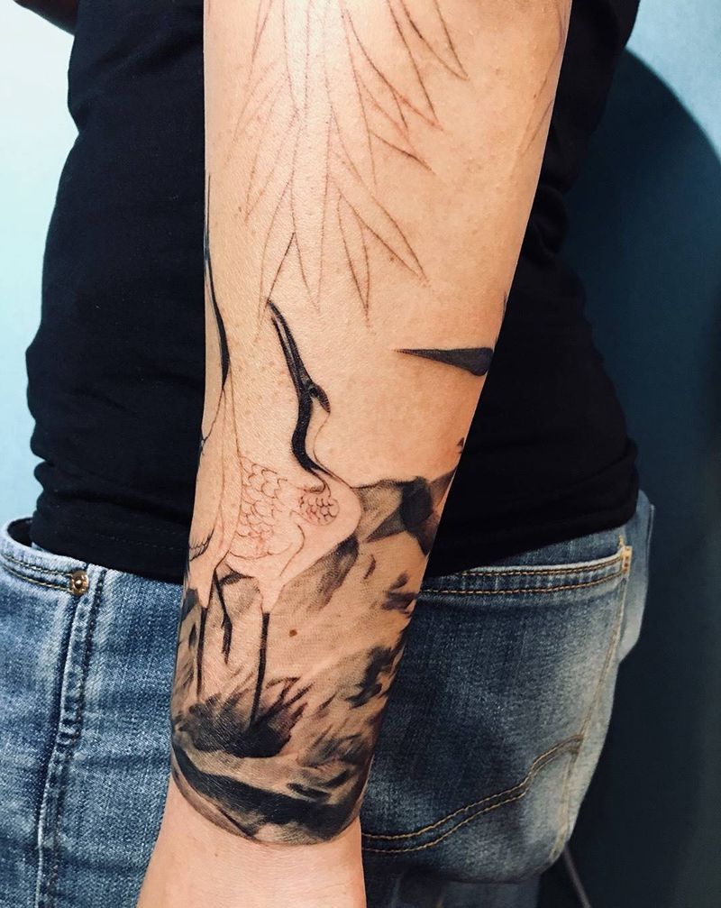 写意风格(遮盖)纹身图片_手臂水墨中国风竹子遮盖纹身图案
