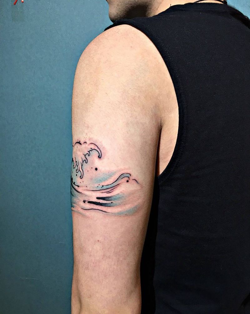 当前位置: 首页 >黑龙江省哈尔滨市纹身店-H&T TATTOO纹身图案>海浪纹身图片_手臂水彩New School浪花臂环纹身图案