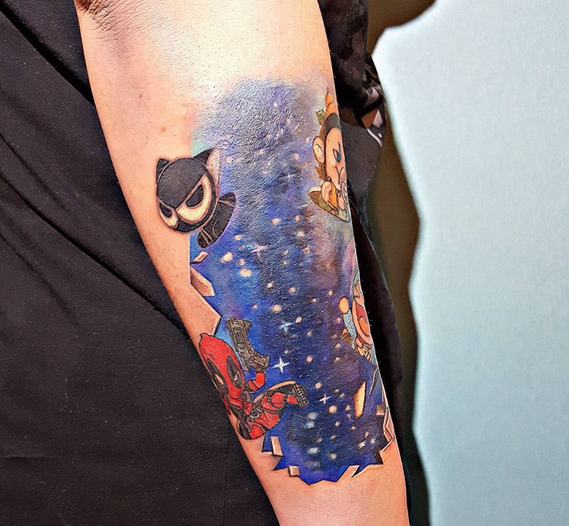 星空系列遮盖纹身图片_手臂New School星空遮盖纹身图案