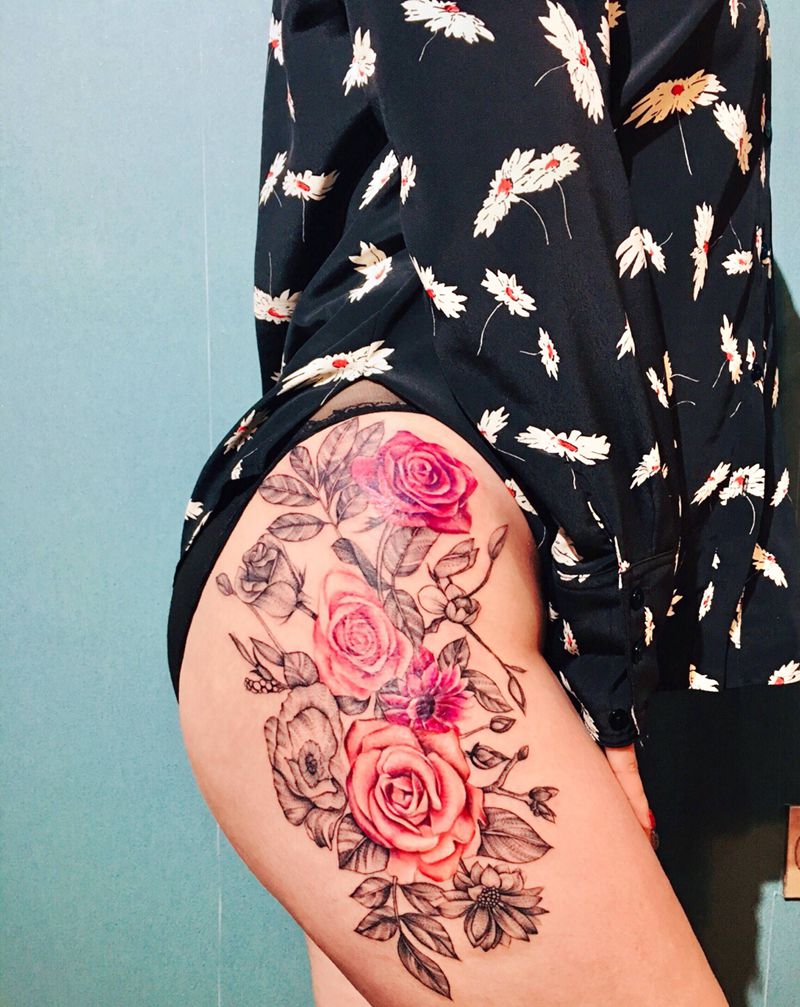 • 女性大花胸纹身_43张霸气漂亮的女性大花胸纹身图案作品