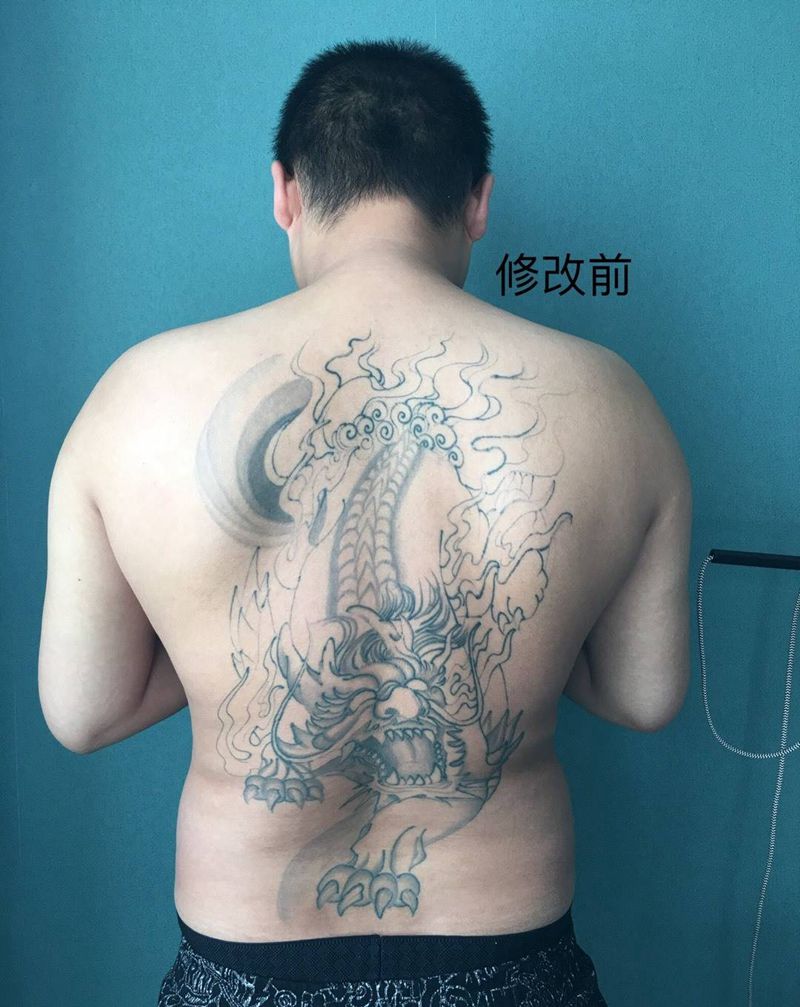 麒麟(修改)未完成纹身图片_背部新传统麒麟神兽纹身图案