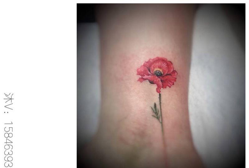 罂粟花纹身图片_脚部清新植物纹身图案