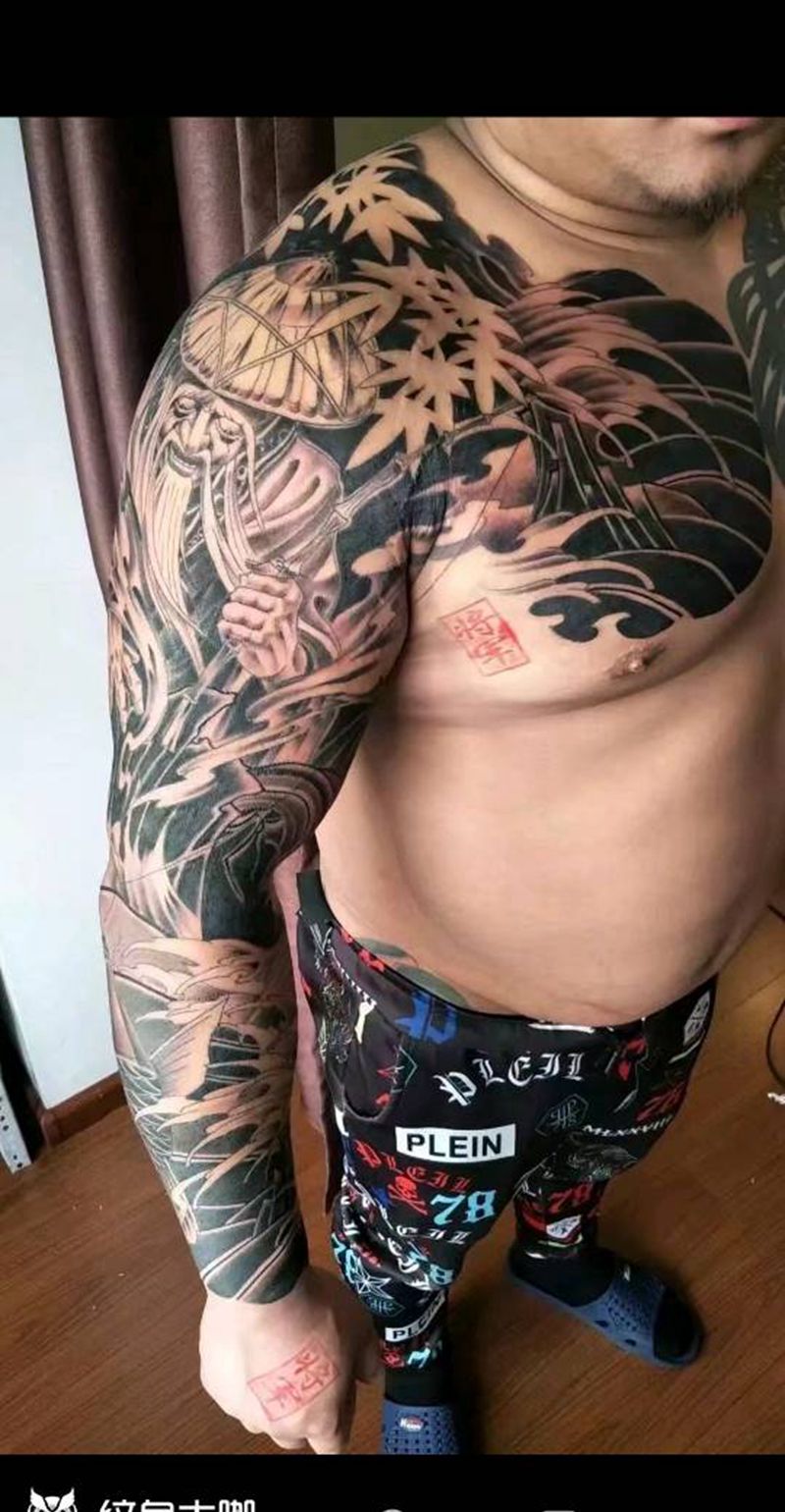 姜子牙钓鱼,愿者上钩纹身图片_手臂新传统纹身图案