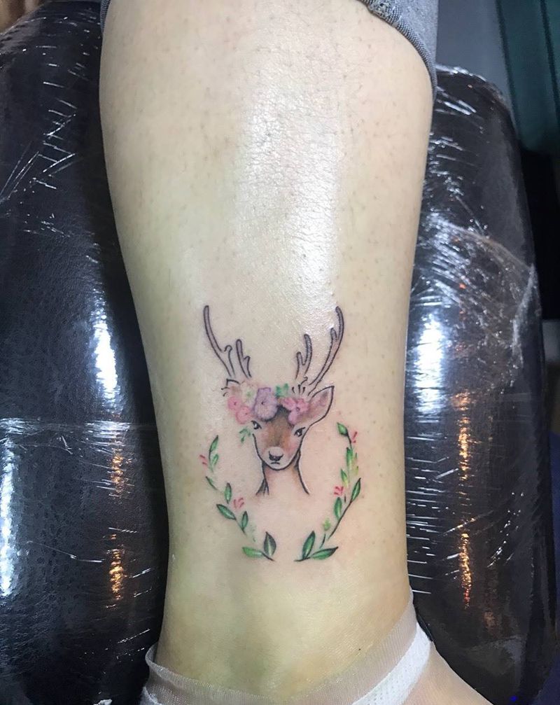 当前位置: 首页 >黑龙江省哈尔滨市纹身店-泽川TATTOO刺青纹身图案>小鹿纹身图片_脚部清新动物纹身图案