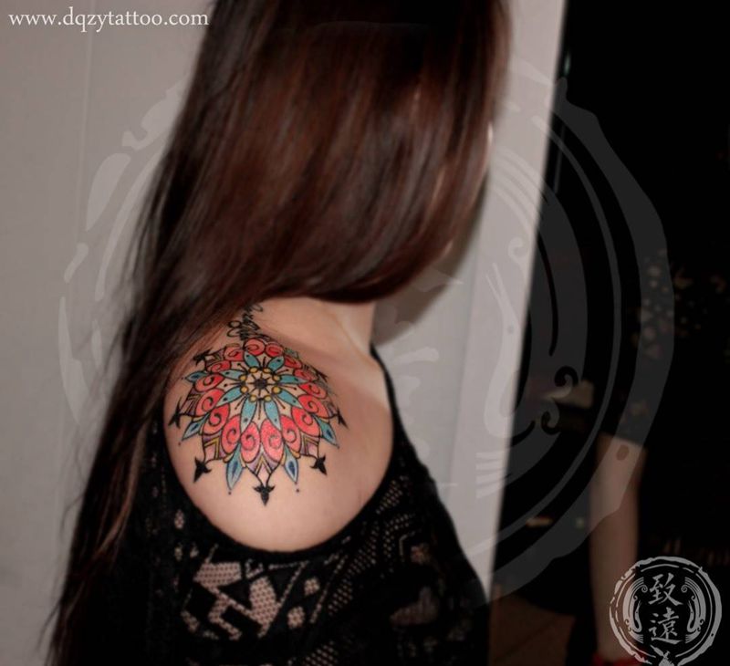 • 纹身吧推荐的披肩图腾半胛纹身图案作品展示