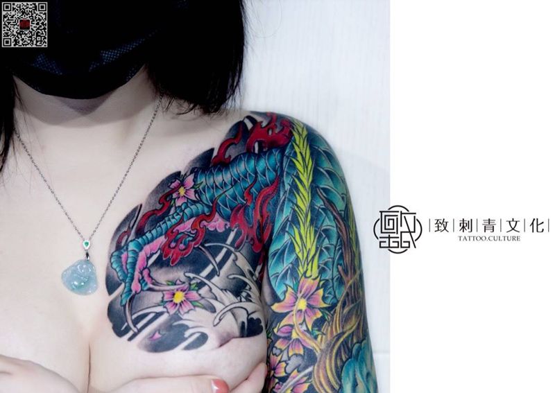 • 女性大花胸纹身_43张霸气漂亮的女性大花胸纹身图案作品