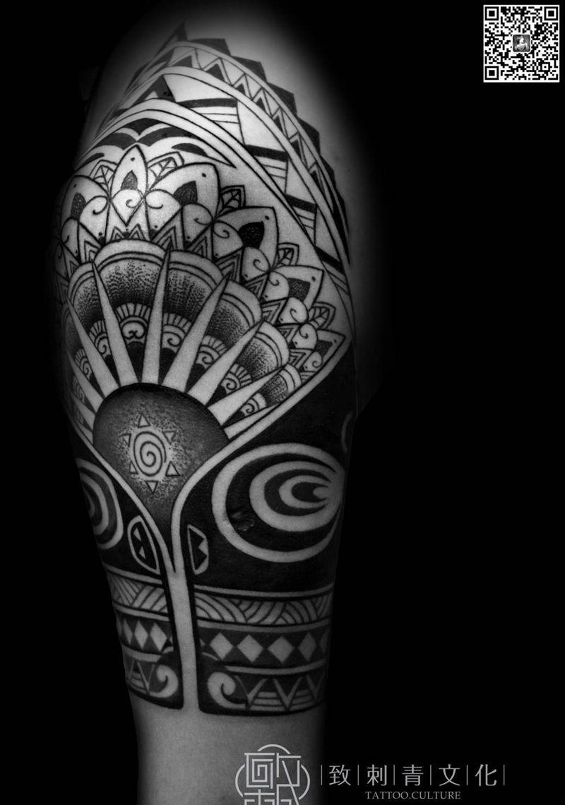玛雅图腾纹身图片_肩部手臂图腾几何纹身图案