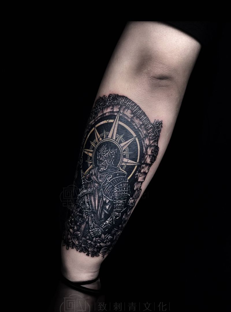 黑灰满背纹身图案