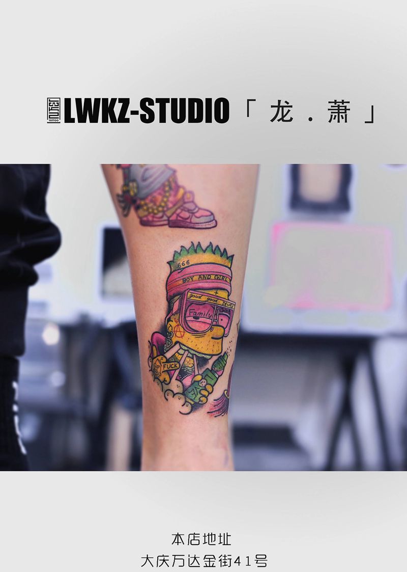当前位置: 首页 >黑龙江省大庆市纹身店-龙纹刻战刺青工作室纹身图案>school tattoo纹身图片_腿部New School纹身图案