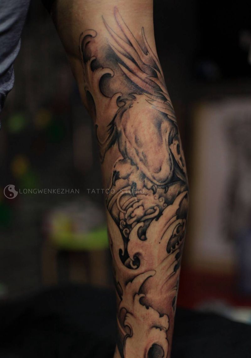 当前位置: 首页 >黑龙江省大庆市纹身店-龙纹刻战刺青工作室纹身图案>谛听纹身图片_成品腿部传统鬼神纹身图案