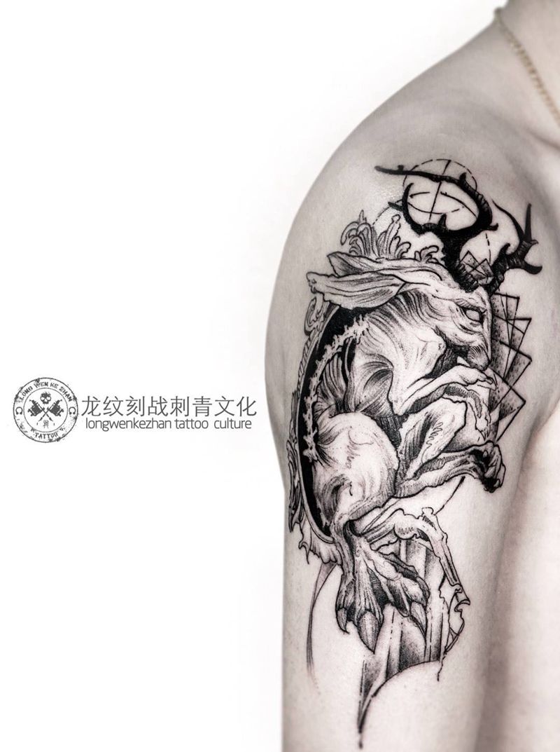 • 纹身吧推荐的披肩图腾半胛纹身图案作品展示