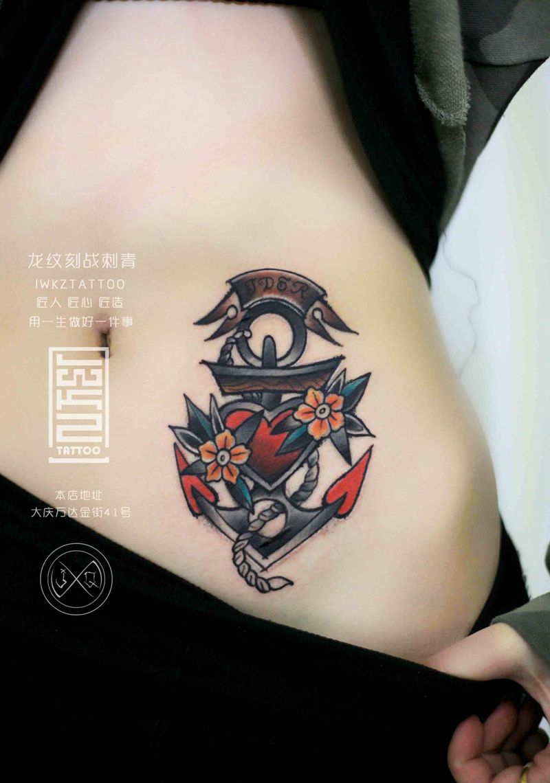 • T关于私处得爱!纹身图片_成品腹部清新字符图腾纹身图案