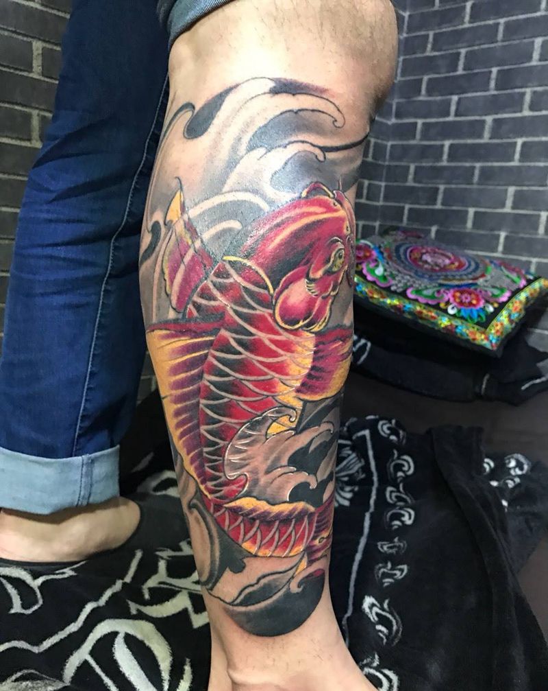 鲤鱼纹身图片_腿部脚部传统纹身图案