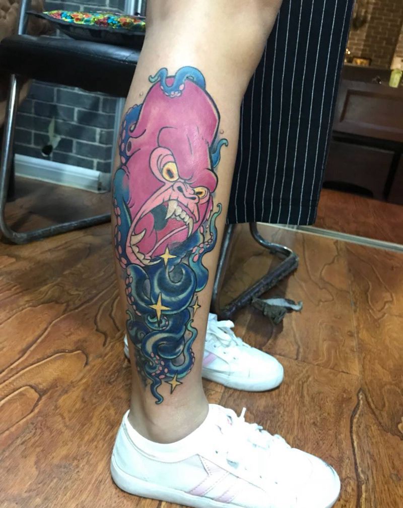 • T网红王老大花腿龙纹身图片_腿部新传统纹身图案