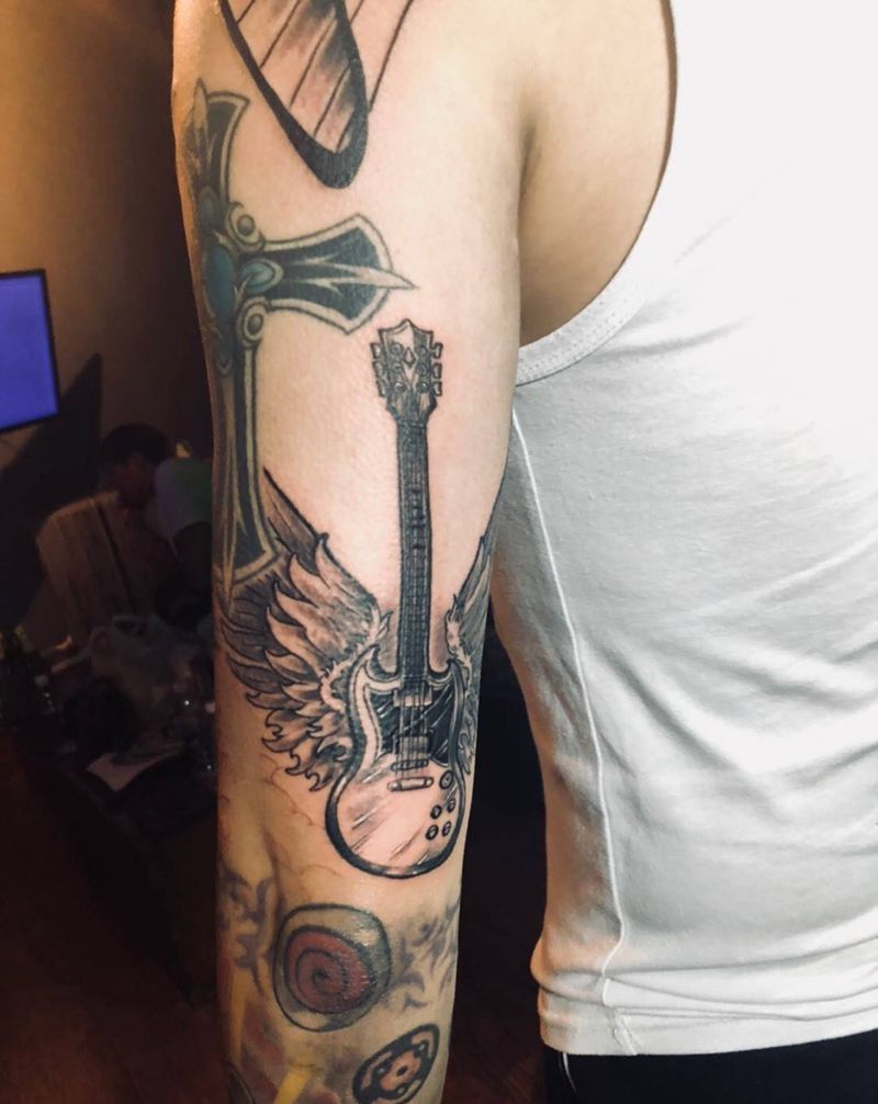 当前位置: 首页 >黑龙江省齐齐哈尔市纹身店-针鬼刺青纹身图案>音乐纹身图片
