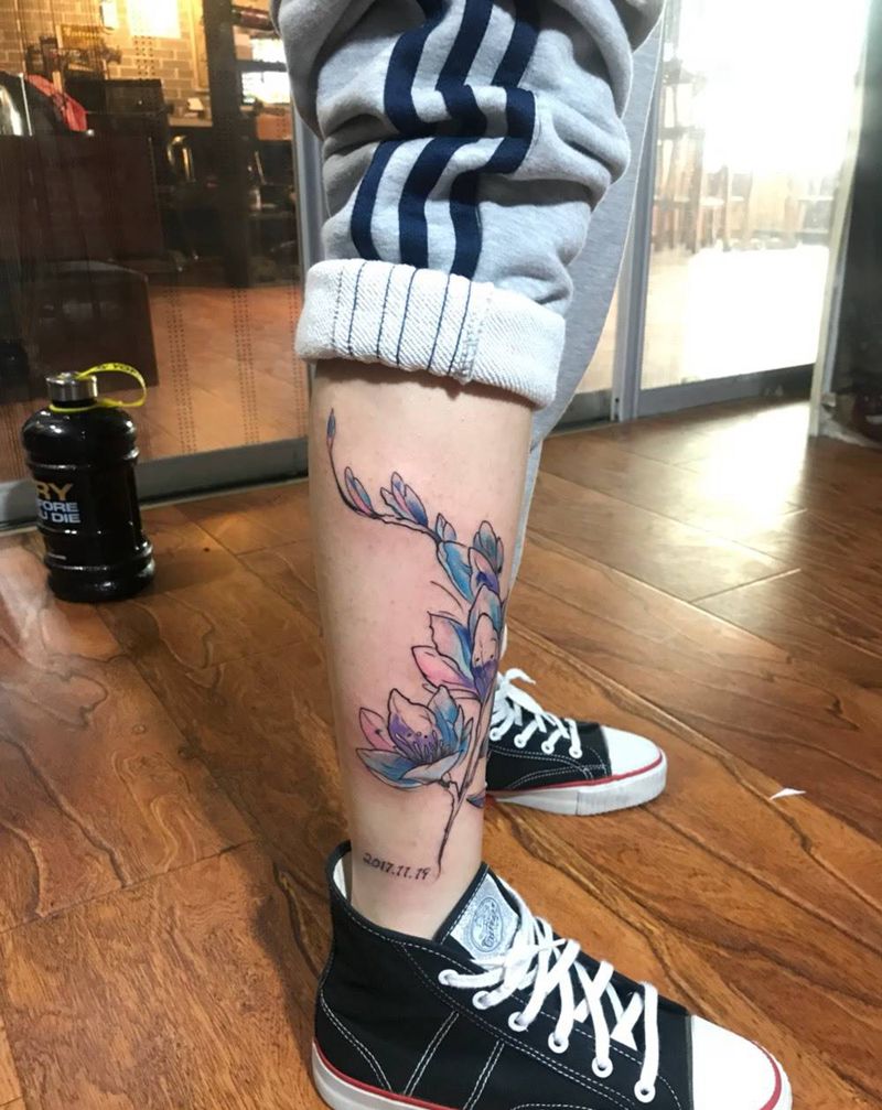 • T网红王老大花腿龙纹身图片_腿部新传统纹身图案
