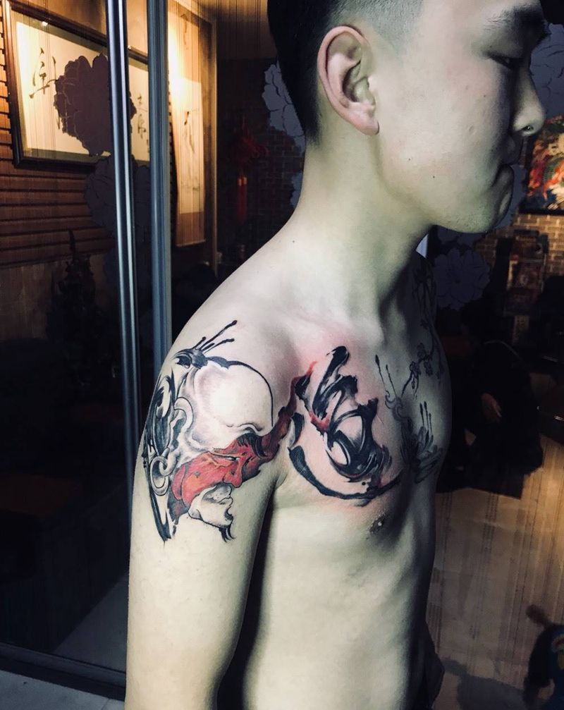 • 纹身吧推荐的披肩图腾半胛纹身图案作品展示