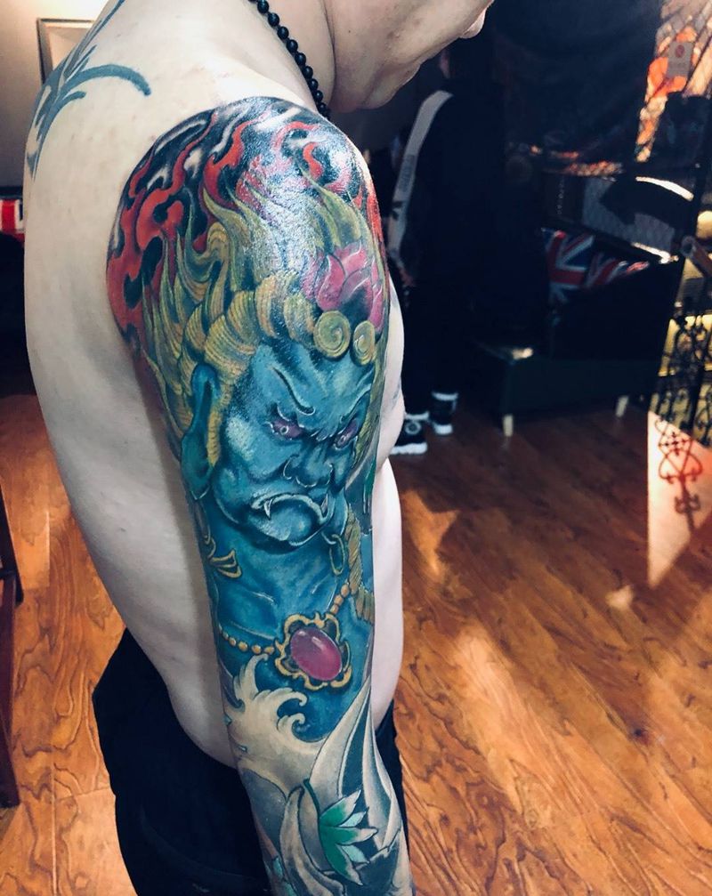 • T网红王老大花腿龙纹身图片_腿部新传统纹身图案
