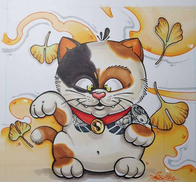 • T招财猫纹身图片