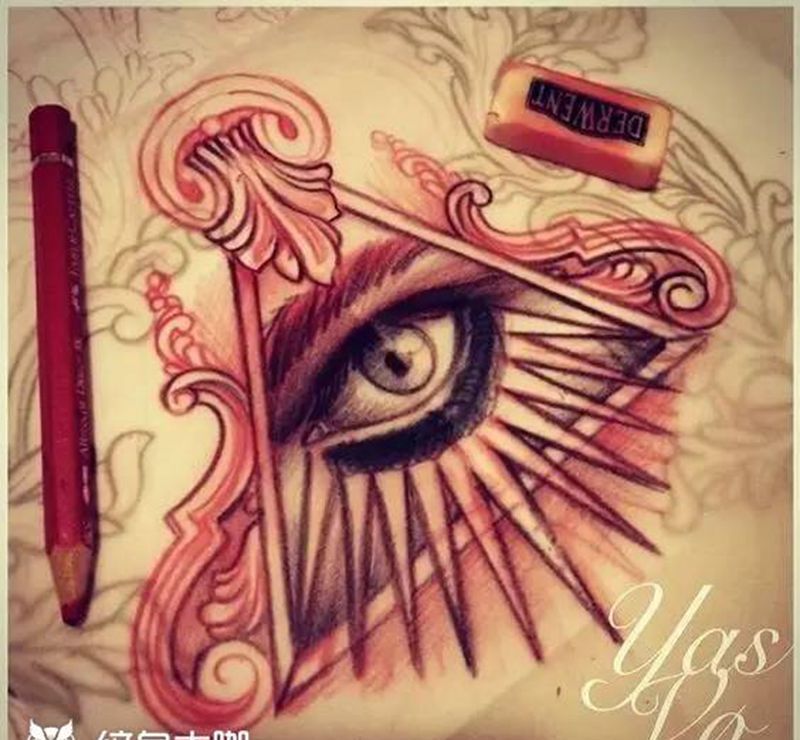 • 手背潮流时尚的玫瑰花眼睛纹身图案