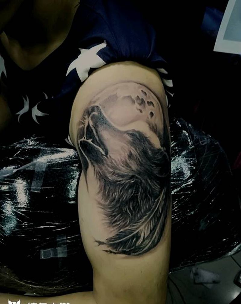 当前位置: 首页 >黑龙江省大庆市纹身店-龙啸堂纹身纹身图案>孤狼啸月纹身图片