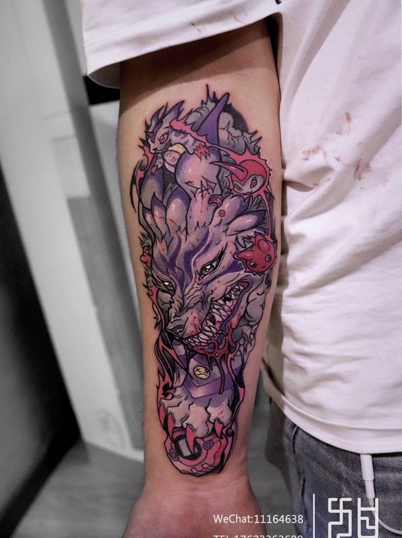 数码宝贝纹身图片_手臂New School数码宝贝动漫狼纹身图案