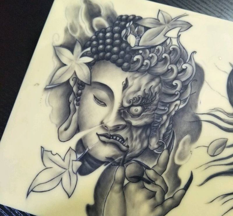 当前位置: 首页 >黑龙江省大庆市纹身店-刺夢·Tattoo紋身工作室纹身图案>一念之间……原基础上改编纹身图片_传统纹身图案