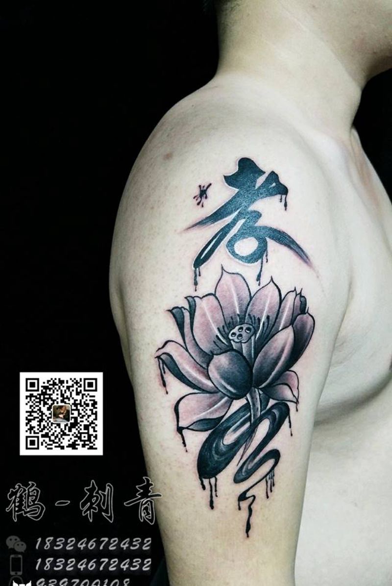 一组15张莲花纹身手