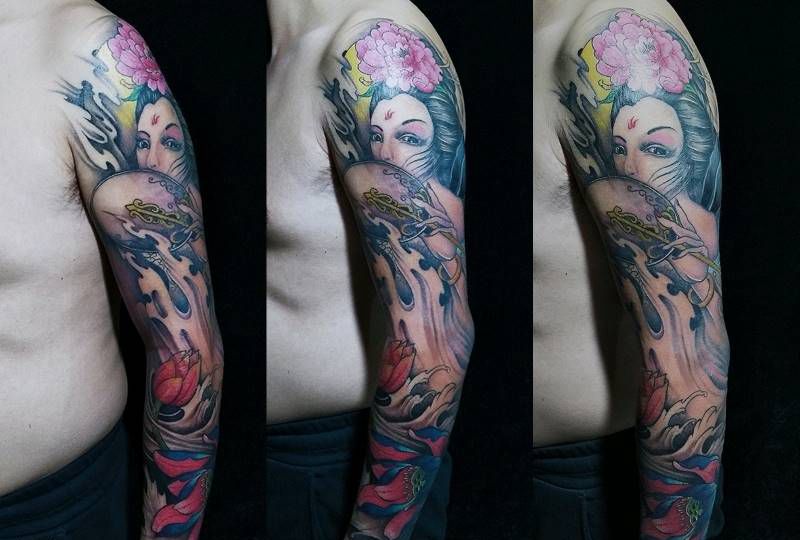 当前位置: 首页 >黑龙江省鸡西市纹身店-鹤刺青纹身图案>传统艺妓荷花,花臂纹身图片