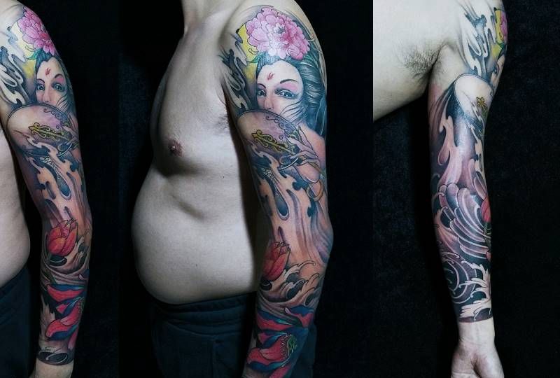 当前位置: 首页 >黑龙江省鸡西市纹身店-鹤刺青纹身图案>传统艺妓荷花,花臂纹身图片