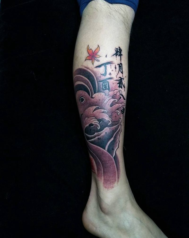 • T网红王老大花腿龙纹身图片_腿部新传统纹身图案