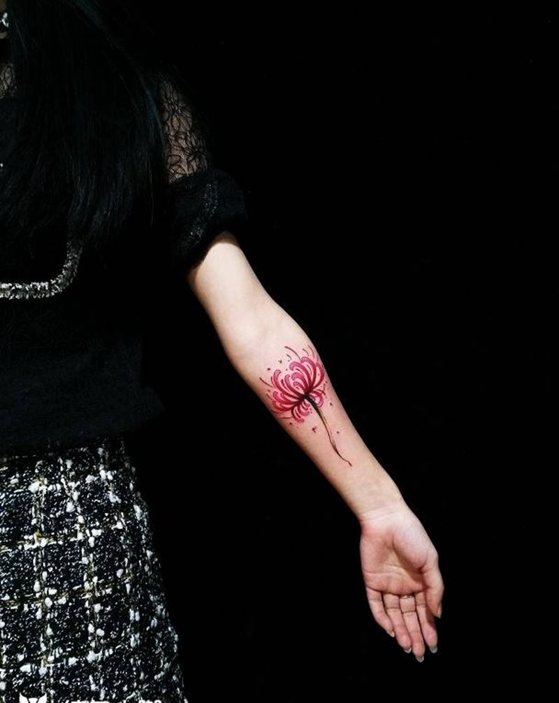 当前位置: 首页 >黑龙江省鸡西市纹身店-鹤刺青纹身图案>彼岸,有叶无花,花开无叶纹身图片